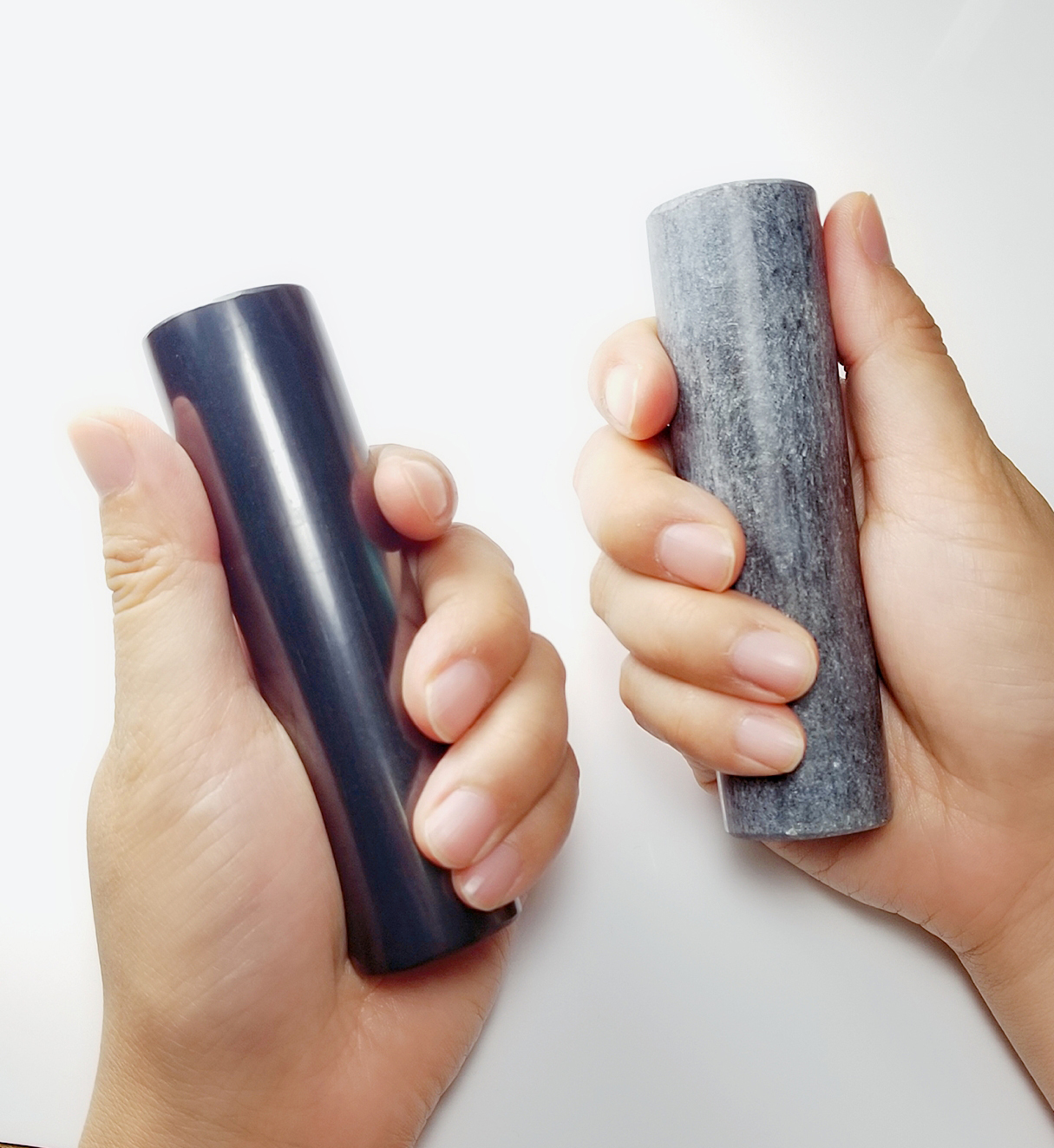 - 使用者左手握住次石墨平衡器(黑色), 右手握住另一支平衡器(灰色),舒服地坐著,雙腿不交叉,雙手放在膝蓋上,使它們保持平行。